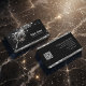 A premium and elegant black business card design for a cleaning service, featuring a sparkling silver feather duster illustration with scattered glitter effects. The layout includes a clean and professional front side with dazzling sparkles, and a well-organized backside with contact details, icons, and QR code. Perfect for modern home cleaning companies looking for a stylish and eye-catching brand identity. High-quality, sleek, and luxurious finish. #SparkleAndShine #CleaningService #MaidService