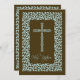 Börja din händelse rätt med vår söta spetsram och kors traditionella baby dop inbjudan. Designen har ett vackert ljust blått blomsterkors ramad med en spetsig kant och placerad på en chokladbrun bakgrund. Lätt att anpassa, lägg bara till din dop kyrka information och fest information och du är redo att gå.