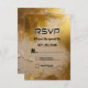 Tillägg en touch av tidlös elegans till din bröllopsbrevpapper med detta svarskort med sprucken guldfolie. Med en lyxig vintage-struktur, djärv RSVP-titel och modern svart-guld färgpalett är denna design både stilfull och formell - perfekt för exklusiva eller svart band-bröllop.