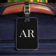 Elegant svart märkning på resväskans märke – Personlig med dina två initialer. Uppgradera dina resaccessorier med detta stilfulla och moderna resväskemärke, med en slank svart bakgrund och anpassningsbar design. Personliggör det med dina två monograminitialer och adressdetaljer på baksidan i elegant vit typografi. Den slående designen säkerställer att dina väskor är lätta att identifiera samtidigt som den tillför en touch av elegans till dina resor.