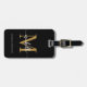 Flickaktig Stilfull Modern Elegant Svart och Guld Monogram Initial Namn Skript Anpassad Personlig Resväskemärke. Denna design har ett förnamn i en snygg handskriven svansfont med monograminitialer, fullständigt namn, adressinformation i guld och vitt på svart. Dessa är lätta att anpassa. Stilfullt feminint present för bröllop, 16-årsdag, brudshow, examen och för alla som älskar glamourös stil.