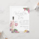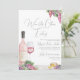 Vattenfärg Elegant Ost Vinprovningsfest Inbjudan. Ett förtjusande rosa och lila vinprovningstema för vin- och ost- eller vinprovningsfest perfekt för en inflyttningsfest, födelsedag, förlovningsfest, tjejkväll eller helt enkelt för kärlek till vin! Komplett med vattenfärgade rosa vinflaskor och glas vin, en liten gul ost och förtjusande druvor i rosa och lila och naturligtvis gröna vinblad.