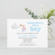 Det är en BOY! Fira din nya ankomst till baby BOY i stil med den här Baby Shower-inbjudan som innehåller en fantastisk av en Stork Carriage a baby in water tone. Du kan ta bort polka punkt mönster på baksidan och anpassa bakgrunden till färg. Den här vackra, enkla designen är en lätt personlig att fira de blivande föräldrarna!
