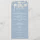This elegant dusty blue wedding menu, featuring pretty string lights, can be personalized with your information in chic typography with your monogram initials on the reverse. Designed by Thisisnotme©