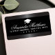 adressetiketter av elegant med mjuk övertoning, grått överst och grund mot svart bakgrund och en vit studentmössa eller färg anpassningsbar. Ditt namn skrivs ut i vitt i ett romantiskt skrivstil med adress nedan. Snyggt och klassutformning.