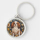 Elegant Sunblommor Cavalier Kung Charles Spain Rund Silverfärgad Nyckelring