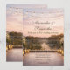 Featuring a dreamy sunset sky, glowing lanterns, and a serene river overlook, this invitation captures the magic of an intimate rooftop ceremony. Perfect for city weddings, destination celebrations, waterfront venues, or elevated terrace receptions, this design blends timeless romance with contemporary sophistication. Order yours today!