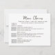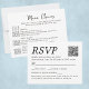 Klassisk elegant vit bröllops-svarskort med fullständiga menyalternativ på baksidan för upp till 4 gäster. Låt dina gäster välja 1 förrätt, 1 huvudrätt och 1 efterrätt samt hur många barnmenyer de behöver med dessa anpassningsbara svars kort. Denna design är för upp till 3 måltidsalternativ, för fler eller färre val, vänligen se variationerna i samlingen eller kontakta mig.