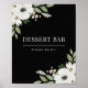 Denna eleganta svarta blomsterdekoration för efterrättsbar är perfekt för ditt blomsterträdgårdsbröllop.