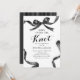 Fira den speciella dagen med våra söta Bow Bröllopsdusch-inbjudningar! Med en tidlös vit bakgrund, kombinerat med en klassisk svart akvarellbåge och banderoll kant, bröllopstiteln 'Hon knyter knuten', och en elegant textmall. Uttryck din unika stil och gör din bröllopsdusch oförglömlig med dessa chic inbjudningar.