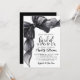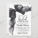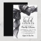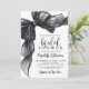 Den här söta bröllopsduschinbjudan med båge har en djärv svart akvarellbåge med flödande band längs över- och vänsterkanten för en chic, modern utstrålning. Överst på inbjudan står "bröllopsdusch" i en stilren blandning av skriv- och seriffer-typsnitt, allt i svart, vilket ger designen en ren, elegant och lite dramatisk känsla. Resten av detaljerna hålls enkla och polerade, så att bågen verkligen sticker ut.
