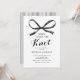 Fira den speciella dagen med våra söta band bröllopsfestinbjudningar! Med en tidlös vit bakgrund, kombinerat med en delikat svart akvarellbåge och en elegant, anpassningsbar textmall, fångar dessa kort perfekt känslan 'Hon knyter knuten'. Uttryck din unika stil och gör din bröllopsfest oförglömlig med dessa chic inbjudningar.