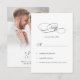 Vår eleganta svart och vit kalligrafi RSVP-kort har en tidlös design. Mot en vit bakgrund skapar svarta typsnitt och element en sofistikerad look. Baksidan visar en anpassningsbar fotomall med en romantisk urblekt kanteffekt, tillsammans med parets initialer i en anpassad monogramlogotyp och bröllopsdatum i matchande kalligrafi – perfekt koordinerat med era bröllopsinbjudningar. Detta enkla minimalistiska bröllop RSVP-kort med kalligrafi kombinerar trender med stil. Anpassa det med din RSVP-information för att återspegla dina unika preferenser. Förhöj din bröllopspapeteri med denna moderna design och se till att varje detalj är minnesvärd.