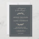 Elegant, modern och enkel svart och elfenbensfärgad bröllopsinbjudan med elfenbensfärgad handskriven chic kalligrafi och modern typografi på en mörkgrå bakgrund och en stilren touch av rustikt lövverk. Lägg bara till era namn och detaljer om bröllopet. Exklusivt designad för dig av Happy Dolphin Studio. Om du behöver hjälp eller matchande produkter, vänligen kontakta oss på happydolphinstudio@outlook.com. Vi hjälper dig gärna att göra din bröllopsdag till den vackraste dagen!