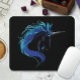Elegant Svart Enhörning Blå Silver Magisk Fantasy Musmatta