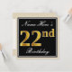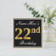 Elegant, svart, faux Guld 22:a födelsedagen + Namn Inbjudningar