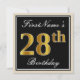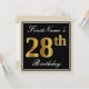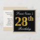 Elegant, svart, faux Guld 28:e födelsedagen + Namn Inbjudningar