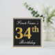 Elegant, svart, faux Guld 34:e födelsedagen + Namn Inbjudningar