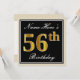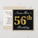 Elegant, svart, faux Guld 56:e födelsedagen + Namn Inbjudningar