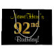 Den här enkla presentsäcksdesignen för eleganter har ett personlig som "Namehär's 92 Birthday!" (med "92:a" som har ett utseende som liknar guld-utseende som liknar faux/imitation) på en svart färgads bakgrund. Namn är i skriptliknande gult-färgad och kan vara personlig. En sådan här personlig-födelsedagspressepåse skulle kanske kunna användas när en present eller gåva till någon som firar sin nittio andra födelsedag är ge. [~Z0000258]