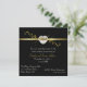 Elegant femtioårsjubileum inbjudan i fyrkantig form med svart och guldton. En svart bakgrund, med ett vackert guldtonsband med utsmyckningar. Grafik av ett hjärtformat diamantområde sitter ovanpå bandet och har texten 50th. Anpassa all text för att passa dina festbehov. En mycket elegant formell inbjudan. Denna fyrkantiga form kan kosta mer i porto, kontrollera på ditt lokala postkontor för udda kuvertpriser.