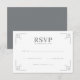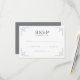 Detta eleganta bröllops-svarskort har en minimalistisk design med rena linjer och geometriska former, vilket skapar en balanserad och symmetrisk layout. Färgpaletten omfattar svart text på vit bakgrund, kompletterad med dämpade grå rektanglar som ger djup utan att överväldiga designens enkelhet. Stiliserade hörnmotiv bestående av korsande linjer förstärker den moderna estetiken, medan det feta serif-teckensnittet för "RSVP" tillför sofistikation. Anpassningsbara fält möjliggör personalisering, vilket gör det perfekt för formella evenemang och förmedlar en ton som är både tilltalande och förfinad.