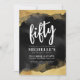 Rolig flickig akvarell svart och guld 50-års födelsedagsinbjudan. Du kan ändra den till vilket födelseår som helst! 30, 40, 60 eller till och med för helt andra evenemang! Låt oss fira att hon är femtio med denna eleganta men flickiga svarta och gyllene femtioårs födelsedagsinbjudan. Med en trendig svart bakgrund och falskt guld eller akvarell eller alkoholbläck för att ge bakgrunden till denna inbjudan, och vit script kalligrafi typografi blandat med en blandning av enkla moderna och klassiska serif-teckensnitt.