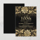Elegant svart guld blommig glitter 100-årsdag inbjudningar
