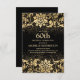 Elegant svart guld blommig glitter 60-årsdag inbjudningar