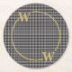 Elegant svart guld Glen-rutig monogram Underlägg Papper Rund
