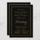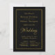 En sofistikerad minimalistisk svart och guld kyrkbröllopsinbjudan. Informationen om kyrkans plats kan ersättas med en trädgård eller strandplats, vilket gör det till ett mer mångsidigt alternativ för din speciella dag.