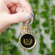 Elegant svart guld modernt monogram chic rund silverfärgad nyckelring