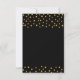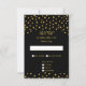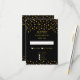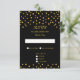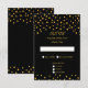 Elegant guld metallisk look konfetti på svarta bröllops-RSVP-kort. Eleganta vackra stilrena svarta gyllene bröllopskort.