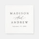 Enkla, kalligrafi bröllopsservetter med dina namn och bröllopsdatum i svart skrift på vit bakgrund. De svarta och vita bröllopsservetterna är perfekta att använda på er bröllopsfest, bröllopsrepetition, förlovningsfest och mer! De eleganta bröllopsservetterna designades för att samordna med vår Elegant Kalligrafi Svart och Vitt bröllopssamling.
