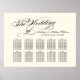 Stor traditionell kalligrafi i svart på en varm elfenbensvit bakgrund ger denna bröllopsplatskarta en tidlös, klassisk känsla. "Bröllopet" är vackert skrivet ovanför era namn och datum, med en strukturerad bordslayout nedan. Helt anpassningsbar för er mottagning.