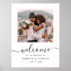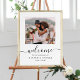 Modern bröllops välkomstskylt (affisch) med svart elegant kalligrafi och ett foto. För mer avancerad anpassning av denna design, klicka på länken Anpassa ytterligare för att ändra typsnitt, storlek och färg.