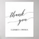 Denna eleganta svarta kalligrafi tackaffisch är perfekt för ett enkelt bröllop. Den neutrala designen har ett minimalistiskt kort dekorerat med romantisk och fantasifull typografi. Anpassa skylten med era namn eller ett kort meddelande.