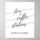Denna eleganta svarta kalligrafiska skylt för te och kaffe är perfekt för ett enkelt bröllop. Den neutrala designen har en minimalistisk affisch dekorerad med romantisk och lekfull typografi.