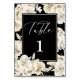 Modern svart och vit ro med guld-blommigt-bröllopsinbjudan till bordsnummer med blommor i vitt färg, enkelt och klassligt vinterbröllop. Underbar för modernt klassiskt vinterbröllop, vintage bröllop och formellt bröllop. Utforska fullt för matchande artiklar. Klicka på knappen Redigera om du vill anpassa designen.