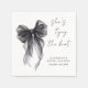 Eleganta servetter till din bröllopsdusch med en delikat vattenfärg av en svart kokett slinga, "Hon knyter knuten" i modern kalligrafi samt brudens namn och duschens datum i enkel bokstav.