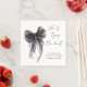 Eleganta servetter till din bröllopsfest med en delikat vattenfärg av en svart kokett slinga, "Hon knyter knuten" i modern kalligrafi, och brudens namn och festdatum i enkel bokstav.