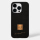 Trendig lyxfärgad exklusiv tittar iphone case med monogrammet och med en faux guld kvadrat över en snyggt svart läder tittar (tryckt, INTE REAL LEATHER STRUKTUR) bakgrund. ++++++++++++ Anpassa det med ditt vita skript namnteckning namn och monogram namn initialer.