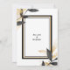 Elegant Black med Guld bröllopsinbjudan designad med vit och guld färgad på svart bakgrund, trimmad med svart och guld färgad löv. I texten på framsidan finns: Namn, datum och tid för Bröllop, plats och mottagning som ska följas. Den omvända texten omfattar: Brides och Grooms första namn, som gränsar till svart och guld ramar och löv. Om du vill anpassa dig infogar du dina uppgifter i mallen och ersätter exempeltexten. Se till att du ser hela Eleganten Black With Guld Bröllop Collection för matchande kontorsmaterial och tillbehör.