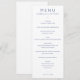 Denna eleganta meny för bröllop har en minimalistisk design med rena linjer och gott om vitt utrymme, vilket skapar en sofistikerad och modern look. Färgpaletten är enkel, med svart för huvudsaklig text och mjuk grå för sekundära detaljer, vilket förbättrar läsbarheten och stilen. Typografin är enhetlig, med feta rubriker och en läsvänlig sans-serif-teckensnitt för menyalternativen, vilket säkerställer klarhet och elegans. Perfekt för formella evenemang, förmedlar denna design en atmosfär av underdriven lyx, idealisk för bröllop eller exklusiva sammankomster.
