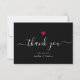 Elegant svart modern skript vinröd hjärta tack kort