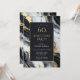 Elegant svart och guld 60-års födelsedagsinbjudan. Denna inbjudan visar upp en elegant design med en glamourös touch, med en sofistikerad blandning av svart och guld. De marmorerade accenterna ger en lyxig känsla, medan den övergripande estetiken utstrålar förfinad stil, perfekt för att fira en milstolpe. En fantastisk kombination av färger och texturer gör denna design till ett oförglömligt uttalande för varje speciell tillfälle.
