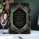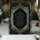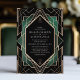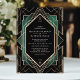 Bjud in dina gäster till en sofistikerad fest med denna eleganta Art Deco-bröllopsinbjudan, med ett fantastiskt gyllene geometriskt mönster på en rik svart bakgrund med lyxiga smaragdgröna accenter. Den tidlösa designen och det vintage charmen gör den perfekt för ett bröllop med en touch av 1920-talets glamour. Idealisk för par som uppskattar klassisk stil och lyx, fångar denna inbjudan vackert essensen av Art Deco-eran.