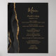 Den vänstra kanten på denna eleganta moderna bröllopsmeny skylt har en svart akvarell agat kant med falskt guld glitter. Ordet "Meny" visas i guldfärgad handskriven skrift på en skiffer svart bakgrund. Anpassa den återstående texten med parets namn, bröllopsdatum och meny detaljer.