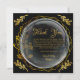 Denna eleganta svarta och gyllene tack-kort har en stilren blomstergeometrisk cirkelkrans med ömtåliga gyllene blad på svart bakgrund, en tidlös och modern design som passar så många speciella tillfällen. Oavsett om du skickar ett meddelande om tacksamhet efter en bröllopsdag, baby shower, förlovningsfest, examensfirande eller pensionsfest, så lägger detta minimalistiska men ändå lyxiga tack-kort till den perfekta avslutande touchen.