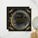 Denna eleganta svarta och gyllene tack-kort har en stilren blomstergeometrisk cirkelkrans med ömtåliga gyllene blad på svart bakgrund, en tidlös och modern design som passar så många speciella tillfällen. Oavsett om du skickar ett meddelande om tacksamhet efter en bröllopsdag, baby shower, förlovningsfest, examensfirande eller pensionsfirande, så lägger detta minimalistiska men ändå lyxiga tack-kort till den perfekta avslutande touchen.